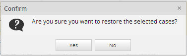 - Restore Cases: This option helps you to restore cases. Select the cases, by marking the checkboxes located at the left side of the panel, you want to restore and then click on Restore Cases option, the following window confirmation will display: