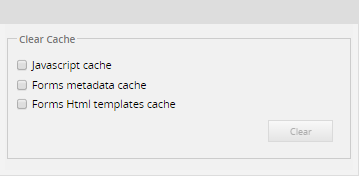 Form version 2.0.40 and later it is strongly recommended to clear cache for every change made on ProcessMaker. The option to clear cache was divided in 3 different options. Go to ADMIN > Settings > Clear Cache and the Clear Cache window will display as follows: