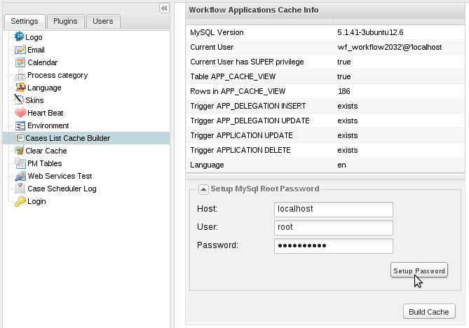 Then click on to Setup Password to save the changes. This will update the encrypted database information stored in /workflow/engine/config/paths_installed.php file.