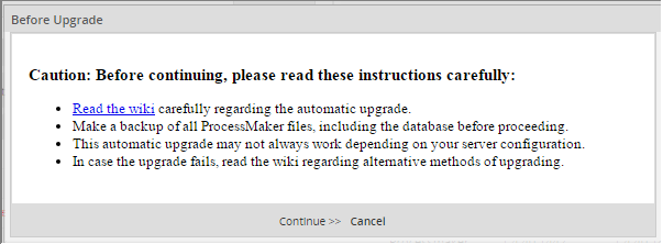 - Latest Version: If it is required to upgrade ProcessMaker to the latest version, click on the upgrade button and the following information will display: