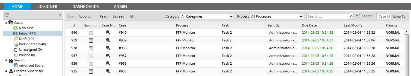 The FTP Monitor needs to have access to a valid FTP or Shared/Local directory. For each file uploaded to that directory, a new case will automatically be created and automatically routed to the second task in the process. That file is added as an Input Document file in the new case. For this reason, the process needs to include an initial task which will automatically be skipped by the FTP Monitor and an Input Document. The FTP Monitor checks for new files in the directory when ProcessMaker's cron.php file is executed. To ensure that FTP Monitor is regularly checking the directory, a cron job in Linux/UNIX or a Scheduled Task in Windows should be created to periodically execute ProcessMaker's cron.php file.