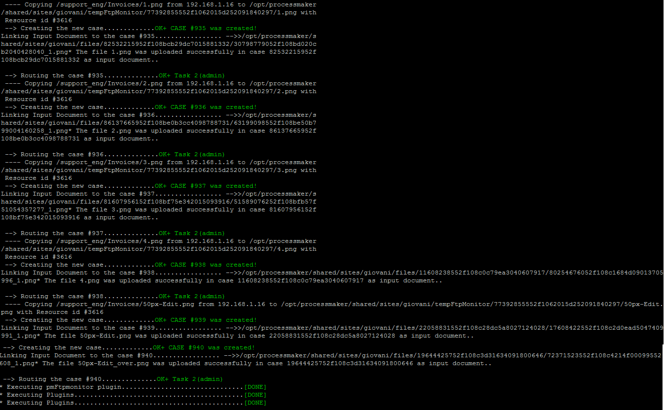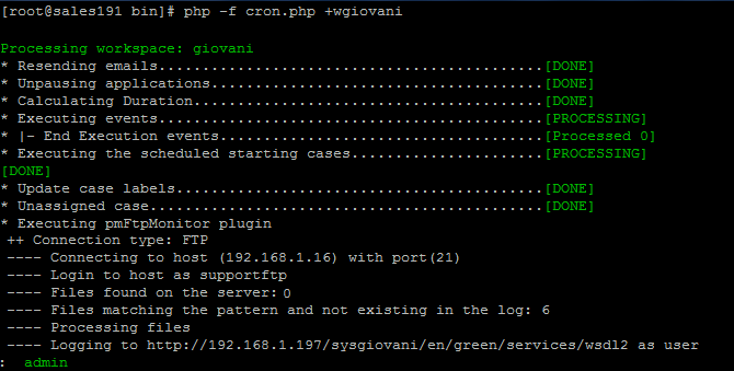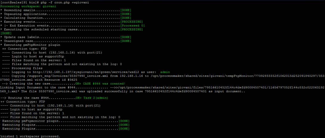 Step 6 - Execute cron.php: Execute cron.php to start cases for each file uploaded to the monitored directory: