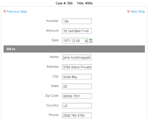 Click on Next Step to see the DynaForm filled with the variables passed from the XML file: