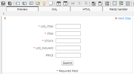 The Dynaform is created by default with all the fields from the PM Table. Dynaform fields can be removed or added as required, but remember that any added fields in the Dynaform will not be stored in the PM Table.