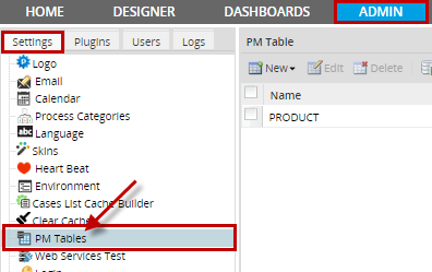 To create PM Tables, go to ADMIN > Settings > PM Tables