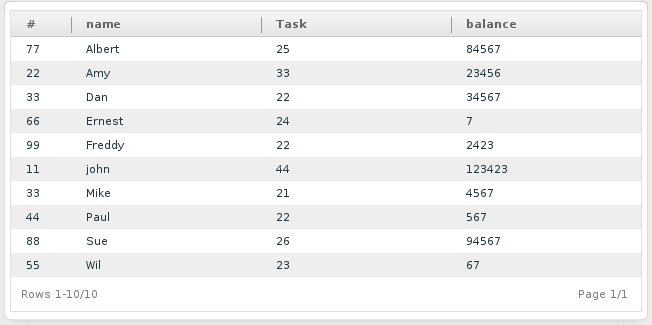 The pluginName/menupluginName.php file contains code to add a new menu to the ProcessMaker interface. By default, clicking on this new menu will display the page generated by thepluginName/pluginNameList.php file, which displays a list of users in a grid. The structure of the grid and its "uid", "name", "age" and "balance" fields are all defined in a sample XML named pluginName/welcome.xml. Notice that the XML code in this file is very similar to the XML code used for a grid DynaForm.