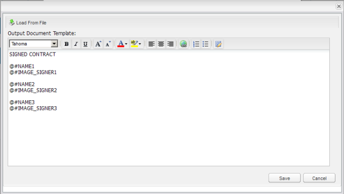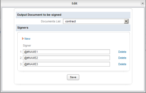 - Edit the Output Document to add the dynaform and signs variables and click on Save: