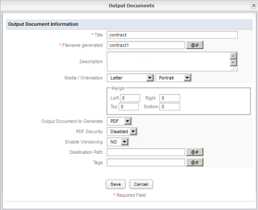 - Create an Output Document called Contract: