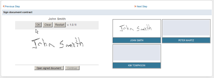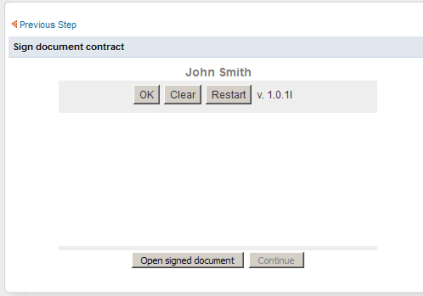 - Open Signed Document: shows the document in a pdf format after the signing procedure.