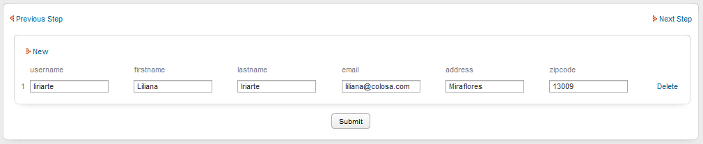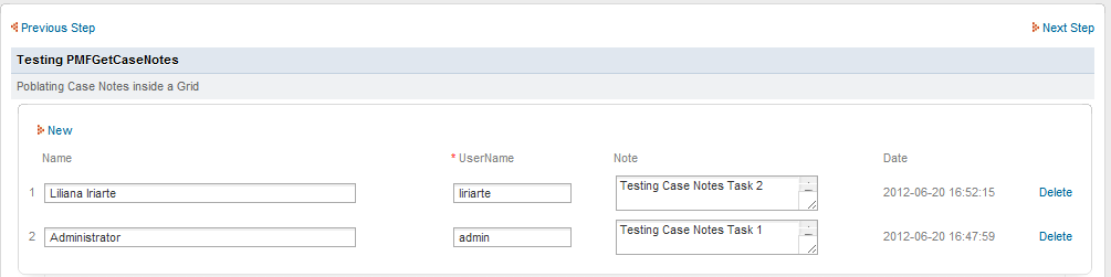Second, create a DynaForm with a grid field which is named "UserInformation", which holds the grid form defined above.