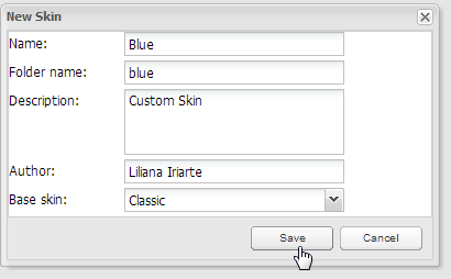 Note: When a skin is changed it will be visible ONLY for the current browser and workspace where user applied it.