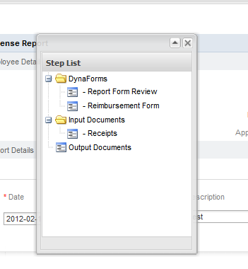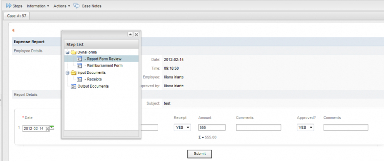 - Selecting a DynaForm: On the right side of the screen the DynaForm will be displayed selecting the lists of steps as shown below: