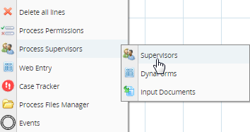 Then open the process which will be assigned a process supervisor. Right click on a blank area in the process map and select Process Supervisors > Supervisors from the menu.