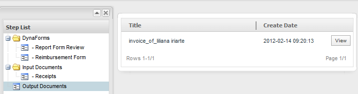 - Selecting an Output Document : On the right side of the screen the Input Documents generated during the process will display as shown below.