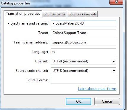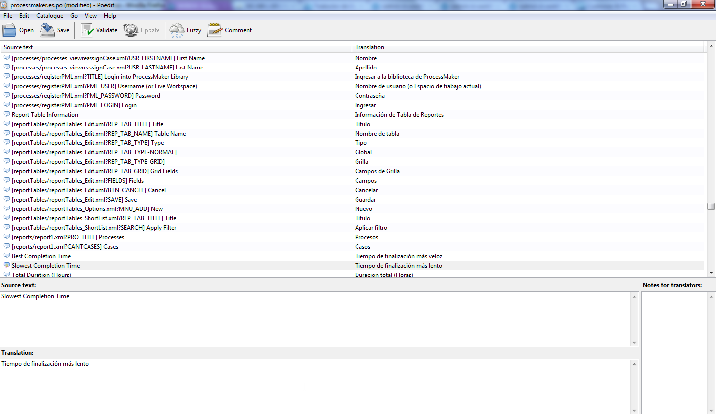 Note: If using ProcessMaker version 1.6-4257 or later, please be aware of this bug which causes ProcessMaker to not recognized the language in the PO header. To fix this problem, edit the PO file manually with a bare text editor to remove the automatic comment added by PoEdit to the PO header.