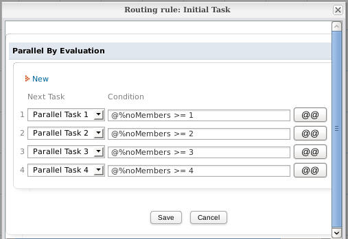 Then, set a Trigger to fire in the "Initial Task" which determines the number of parallel tasks to execute and which users will be designated to work on each parallel task.