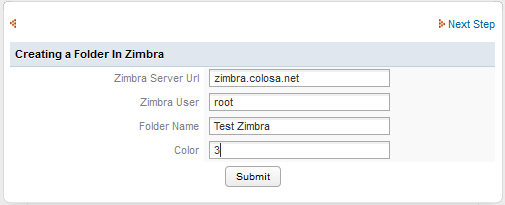 getZimbraFolder(): It gets the characteristics of a specific folder created previously at Zimbra environment.