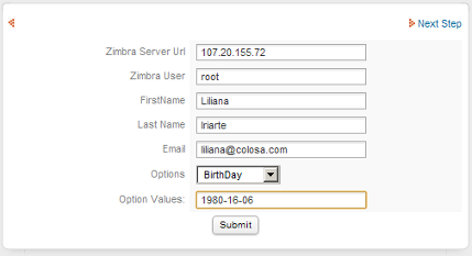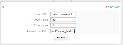 - ServerUrl: Enter the ipaddress/displayName used for loging in to Zimbra Server.