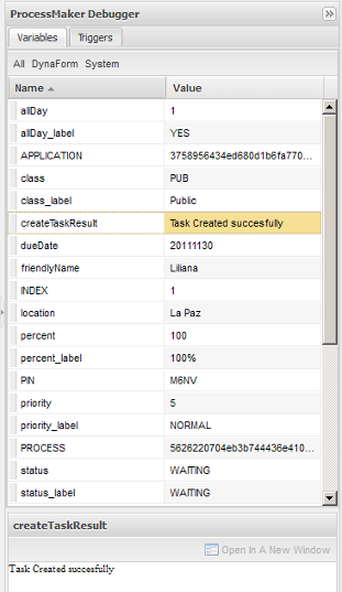 Click on Submit and in the createTaskResult variable you will get a message “Task Created Successfully”.