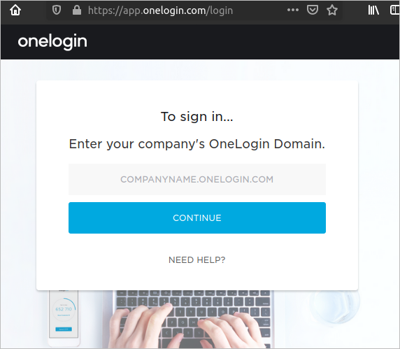 This redirects you to your OneLogin domain. Once in OneLogin, enter your OneLogin credentials and then click Sign In.