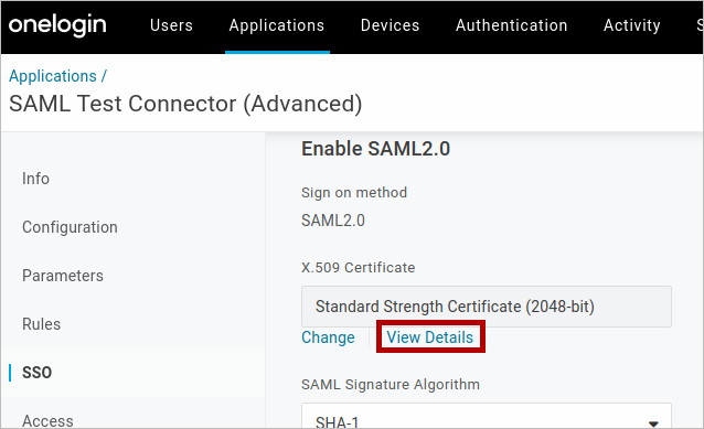 - SAML 2.0 Endpoint (HTTP) to Single Sign-On Service.