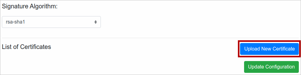 Leave the Signature Algorithm field filled in by default. Click Upload New Certificate.