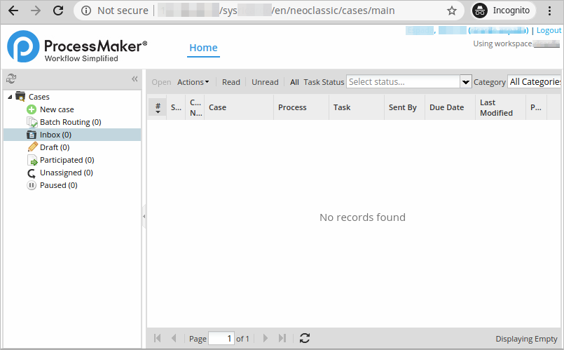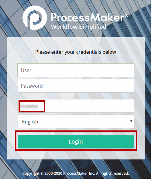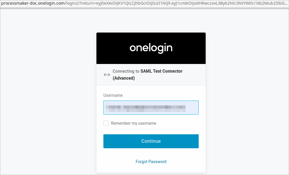 To be redirected to OneLogin login page, in your ProcessMaker domain, enter the Workspace name and then click Login.